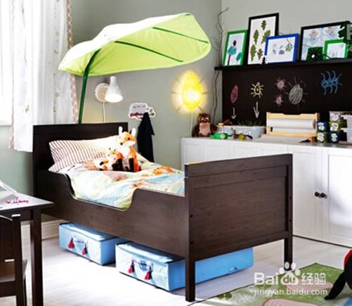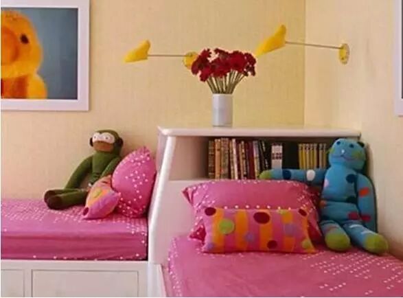 上下铺的“高挑型”儿童床也是一个不错的选择。这样能将两个人的空间距离拉近,又能很好地进行沟通。