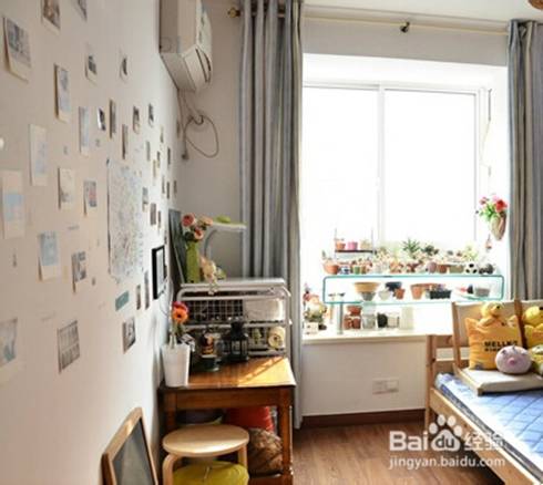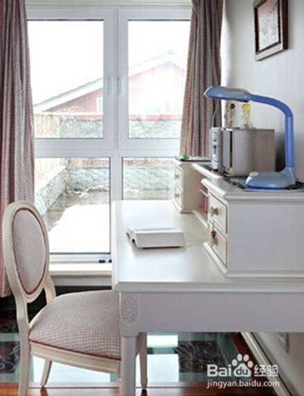 搭配贴士:房间一角被装饰成小小的学习休闲天地,淡雅的白色调与简单的墙面挂饰,利于孩子们在其中集中精力学习。