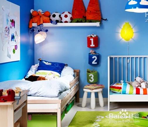 搭配贴士:房间和家具的色彩应采用三原色,如:红、黄、蓝,它们简单、明了,易于儿童识别。