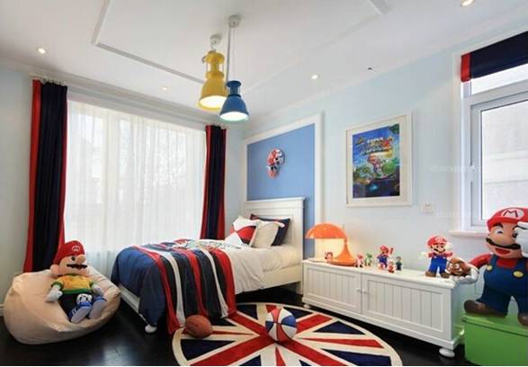 这个时期的孩子已经有了相当的独立性,应该对女孩房和男孩房进行区分,男孩可以多一些运动元素,女生则喜欢粉红公主风格。