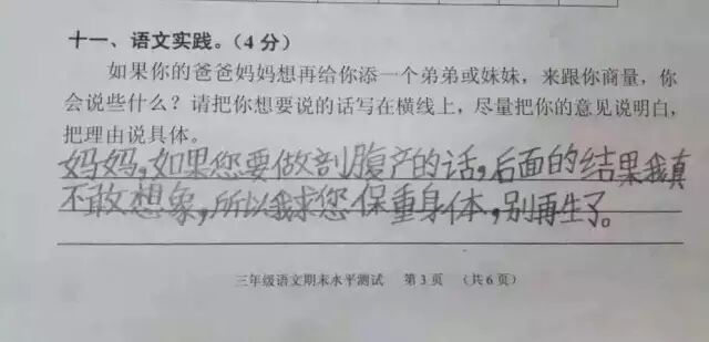 最近的朋友圈的各种奖状、成绩满天飞,有一道题火得不行,广州三年级语文考题竟然考“二胎政策”,看看孩子们怎么说,爸爸妈妈会不会产生心理阴影,赶紧来看!