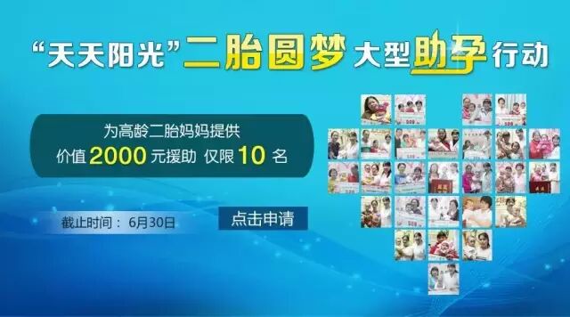 佛山市中山医院“天天阳光”二胎圆梦大型助孕行动,面向全国征集10名女性患者,可通过官网申请或电话报名,经审核通过后,将获得价值2000元援助!报名截止至2016年6月30日!