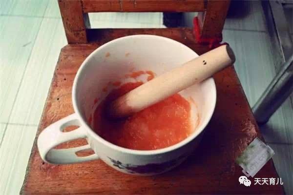 捣烂。昨天做的胡萝卜加南瓜加土豆,发现宝宝有些不消化,上火,于是换成了冬瓜