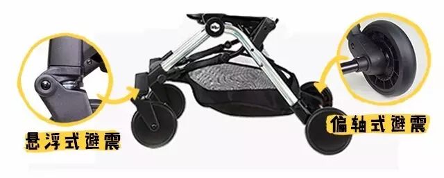 实现前悬浮、后偏轴的四轮避震,保证了优越的避震性能,这是很多大推车和高景观车才用到的避震方案,在伞车中实属少见。