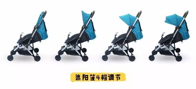 遮阳蓬有4档可调节,宝妈可以根据阳光角度调节遮阳蓬,能更大范围的为宝宝遮阳。