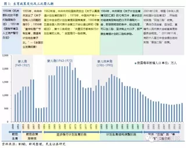 重点把握孕妇产前、新生儿婴幼儿时期受益于需求增长的相关行业。二胎全面放开有望带来新生儿的大幅增长,新生儿在出生、成长中涉及的行业将迎来需求的提振,提升相关公司业绩。依照新生儿的生长过程,我们将投资主线分为四条:产前(怀孕期)、婴儿(0-1岁)、幼儿(1-3岁)及学龄前儿童(3-6岁)。由于从婴儿长大到儿童的时间距离目前较远,投资的重点可放在产前、婴儿、幼儿时期。