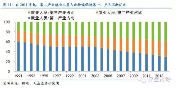 产业结构升级优化、消费服务业崛起将是未来经济增长的主要贡献力。目前,我国经济正处在重要的转型期,未来经济的增长需要靠产业结构的升级优化和消费服务业的拉动:从政策上看,李克强总理在10月14日国务院会议上强调,互联网+双创+中国制造2025结合起来,将催生一场“新工业革命”;从经济增长拉动力看,消费支出在2014年首次超越资本投资,成为经济增长的首要动力,消费服务行业的逆周期特点及自身的蓬勃发展预计在未来经济探底过程中将继续成为经济增长的主要引擎。