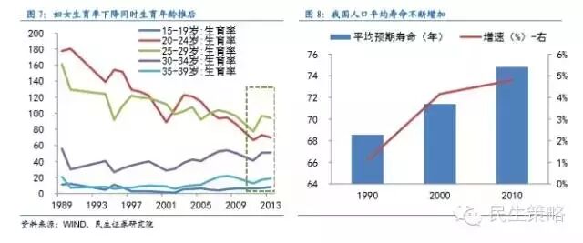 全面放开二胎有必要且宜早不宜迟。在人口红利出现拐点、老龄化加速的背景下,依照现有人口政策,人口结构变化对经济带来的影响将弊大于利,因此,我们认为目前有必要调整人口政策,即全面放开二胎。由于目前仍处于人口结构变化初期,若要调整生育政策,目前是较为适宜的时间点,因为如果政策调整时间推后,第三次“婴儿潮”(1981-1990)中最年轻妇女也将逐渐迈向30周岁,随着年龄增加,妇女生育意愿将减小,即使全面放开二胎,二孩生育率恐难以得到较大提升,政策效果将大打折扣。目前,社会对于全面放开二胎预期高涨,在“十三五”前期研究课题中就包括了人口发展战略和政策研究,我们预计本次“十三五”规划中提出全面放开二胎政策将是大概率事件,并且有望在十八届五中全会后放开。
