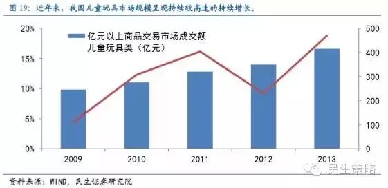 重点关注童装、玩具、动漫。在幼儿时期,由于年龄的增长,对服装、娱乐的需求将增加,娱乐的方式具体有玩具、动漫等。近年来,儿童玩具市场成交额稳定增长,2013年市场成交额达到415.27亿元,年增长率18.75%,相较2010年增长50.57%,未来随着儿童数量的增加,玩具市场的交易额有望持续保持较高速地增长。随着年轻父母对儿童衣着的重视度提高,未来随着年轻父母的增加,儿童服装的需求有望进一步提高,国家统计局发布的《2012-2015年童装产业报告》显示,童装产业产值年增长率可达25%-30%,远高于成人服装业。因此,幼儿时期,重点关注儿童服装、玩具生产商、动漫传媒提供商。
