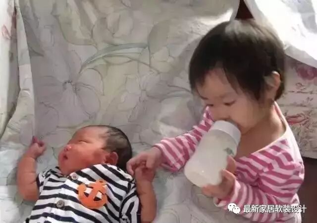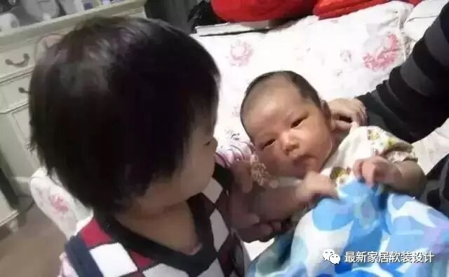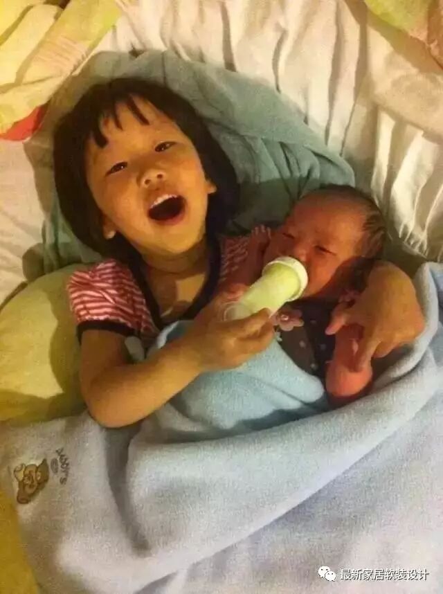 二宝出生后,大宝抱着当姐姐的礼物,躺在自己的新床里
