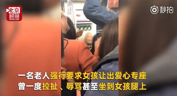 10月30日,上海地铁2号线,一老人要求坐在爱心专座上的女孩让座。遭拒后,老人拉扯并辱骂女孩,甚至坐在女孩腿上。女孩当场气哭。车内不少乘客出面指责老人,有人大喊“耍流氓”,老人则与乘客互怼大骂。如果你是在现场,你会怎么做?