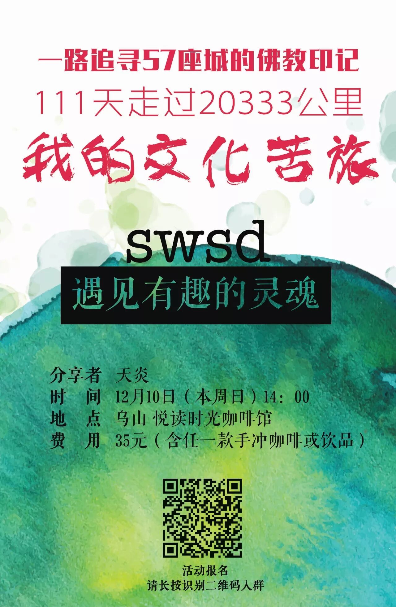 报名方式:长按识别以下海报中的二维码入群,添加群主为好友,并转账活动费用,视为报名成功。