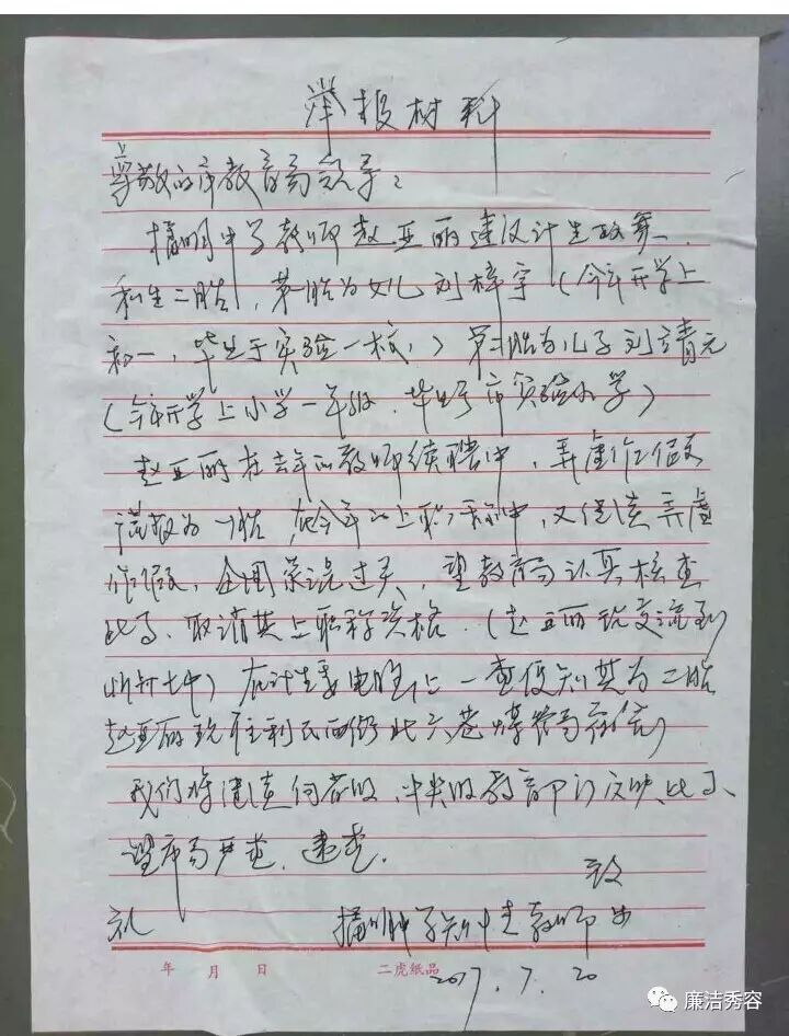 有图有真相,今日微信朋友圈简书“市场信息"发出一组图文消息|:消息称(山西省忻州市)忻府区播明中学一教师赵xx违反计划生育政策,私生二胎.在教师续聘,教师职称晋升中弄虚作假,欺瞒组织,不如实反映真实情况,被本校一知情教师举报在忻州市教育局大门上. !