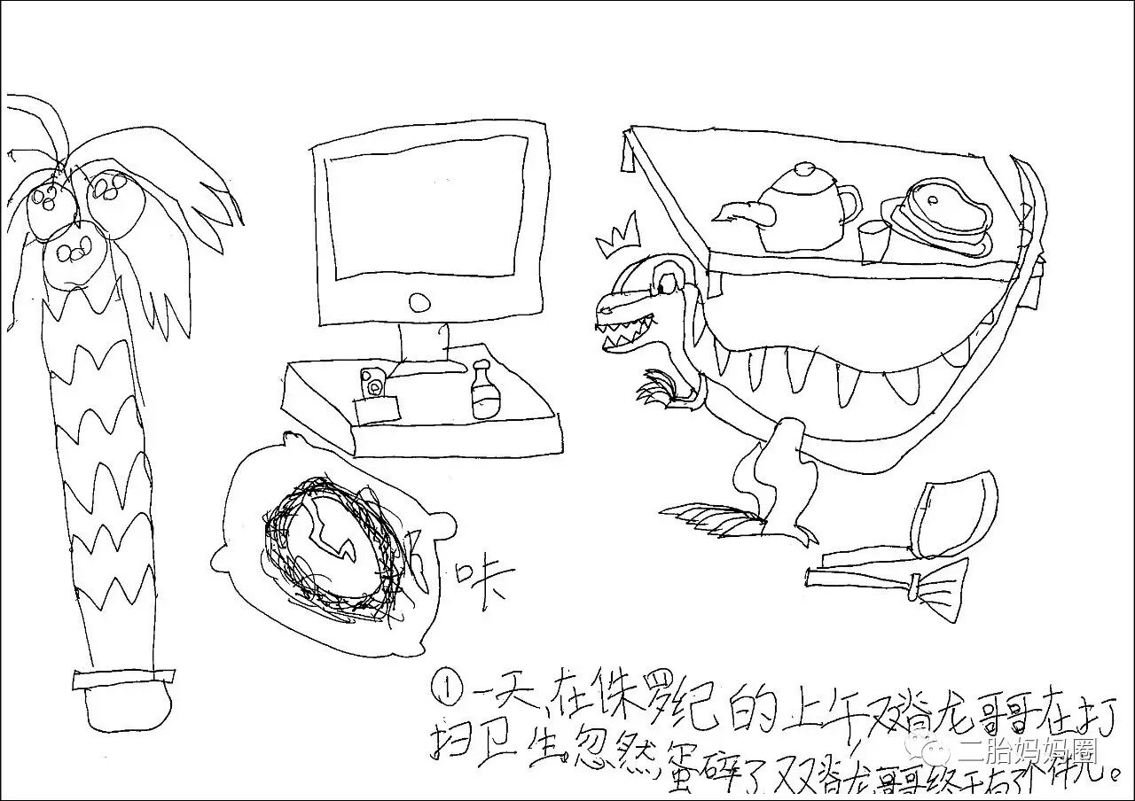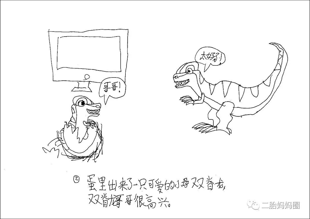 恐龙是卵生的,生下来就会走路,也不用吃奶,因此后面的故事跟恐龙爸妈没任何关系了。话说这恐龙哥哥还蛮勤的。