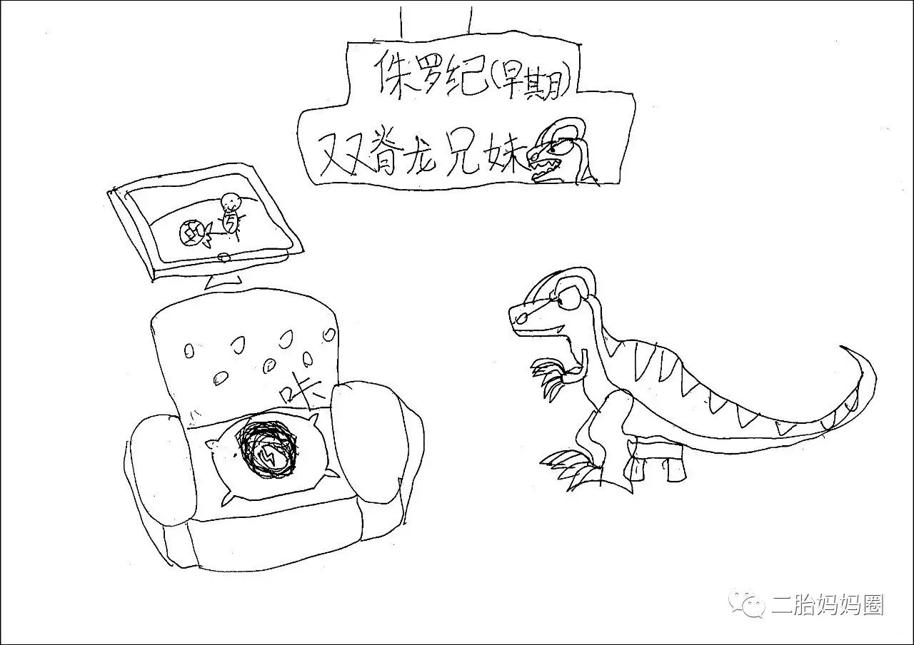 “如果我是恐龙哥哥就好了”,下午川哥把一叠画稿给我,原来他画了一只恐龙妹妹和一只恐龙哥哥。