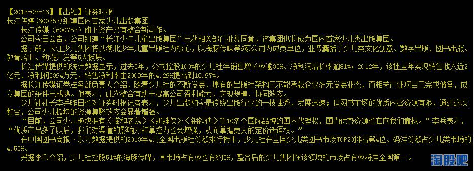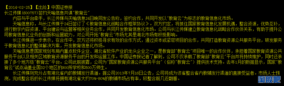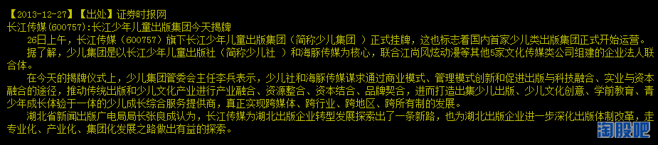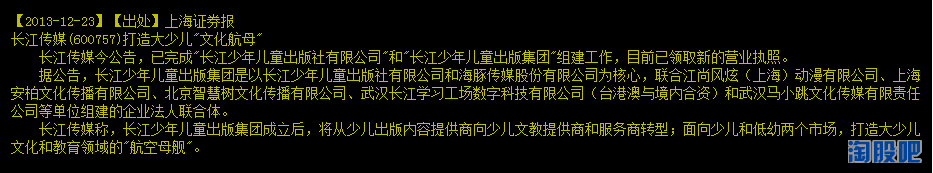最为我国第一家少儿出版集团,以及利用互联网思维O2O战略介入幼儿教育行列,长江传媒完全有能力成为《十三五规划》中的(二胎概念股)的领头羊!拭目以待!
