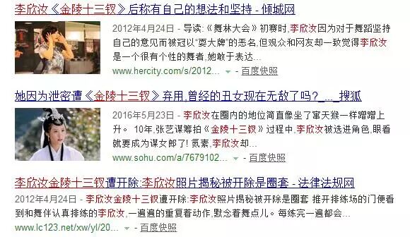 但毫无预兆的,李欣汝突然退出了,这么好的机会让所有人惋惜。据坊间传闻,是因为李欣汝在微博上曝光了她们训练的照片,涉及到电影泄密,被张艺谋导演开除了。