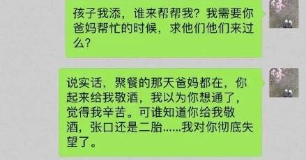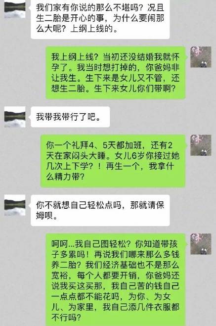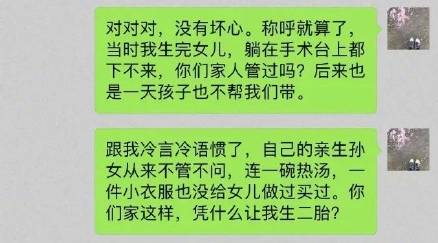 看得出来,妻子对公婆积怨颇深,“战争”的导火索并非生二胎这一件事。