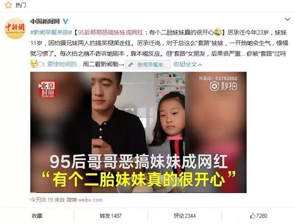 哥哥就是靠拍恶搞妹妹的视频而走红的。