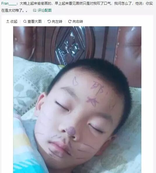@Fran____:大晚上起来偷偷画的,早上起来看见居然只是对我叹了口气,我问怎么了,他说:你实在是太幼稚了。。