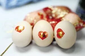 所需物品:喜鸡蛋——婴儿出生后,把煮熟的鸡蛋染成红色(男孩鸡蛋染成朱红色,女孩鸡蛋染成桃红色),叫“喜鸡蛋”。用来送给亲人报喜,或者用来回赠亲属的“粥米”。