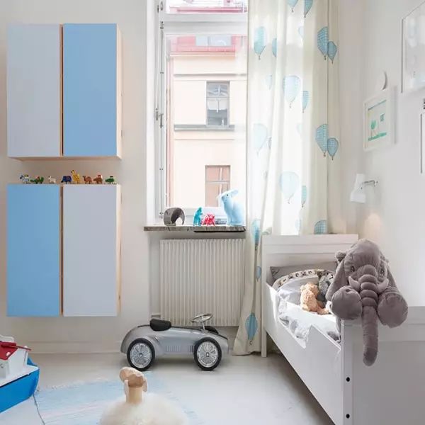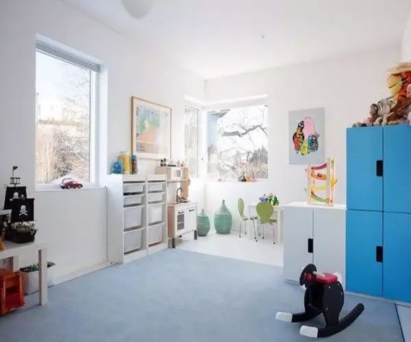 抽屉架子+双开柜子贴墙垒高摆放,不仅节省空间,还提高空间的收纳能力。各种颜色的搭配融合,不仅形成强烈的视觉冲击力,还为空间注入活力,增加童趣。