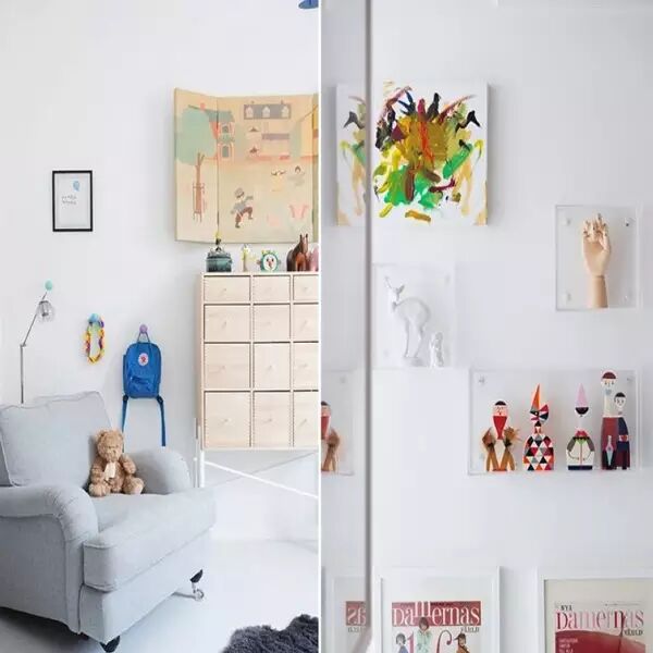 墙面不仅可以作“收纳”艺术画,也可收纳其它物件,就像这里挂上了一些透明的小盒子或者收纳袋。