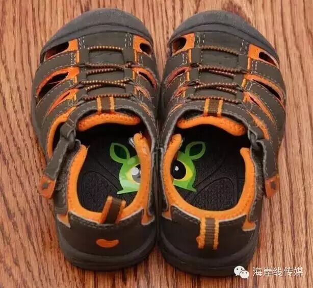 ▲在宝宝鞋里贴上分成两半的贴纸,下次他就知道哪只鞋在左在右了。