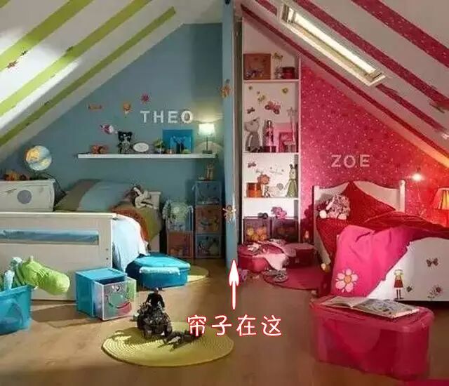 ▲当然,如果是儿女双全的家庭,中间挂一个不透光的帘子也是很不错的选择。