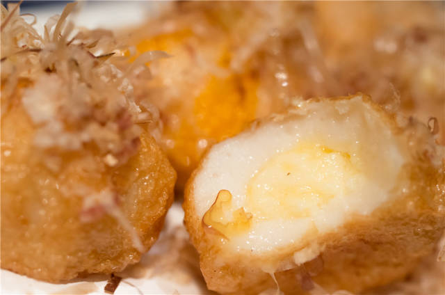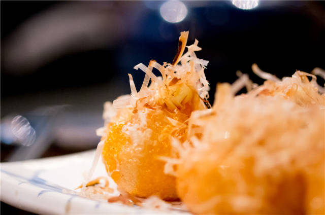 口爆丸也是吉兆在江湖上扬名立万的本钱。口味有芝士、海胆、蟹子三种,极速泡炸,配上缭绕的木鱼须,香而不腻。