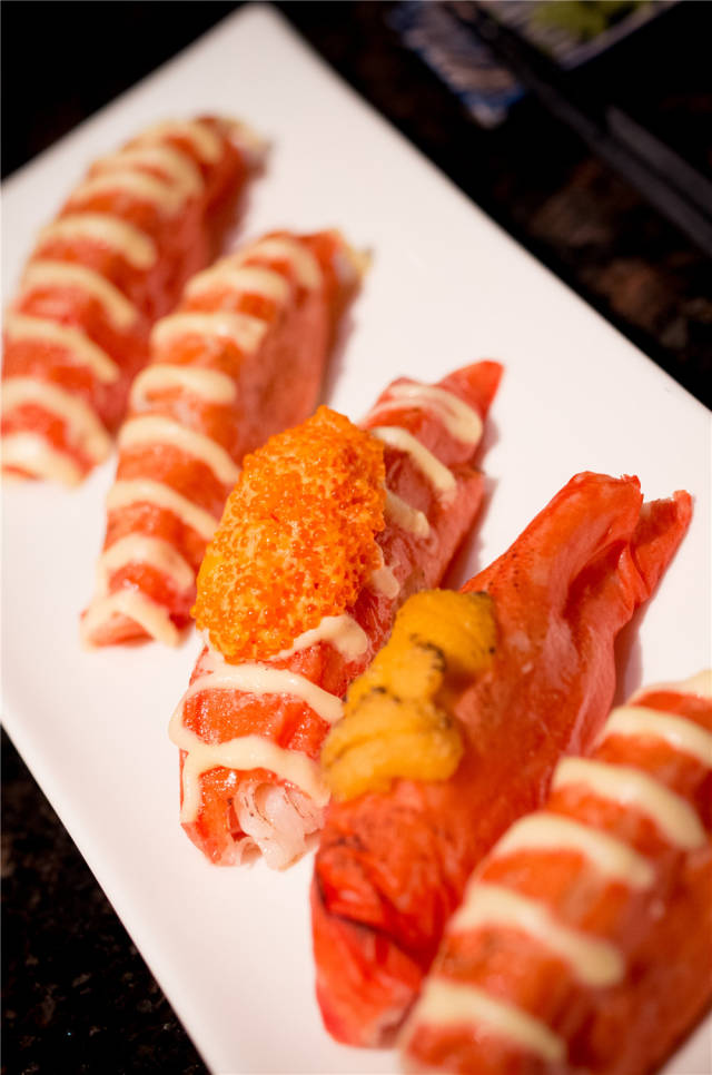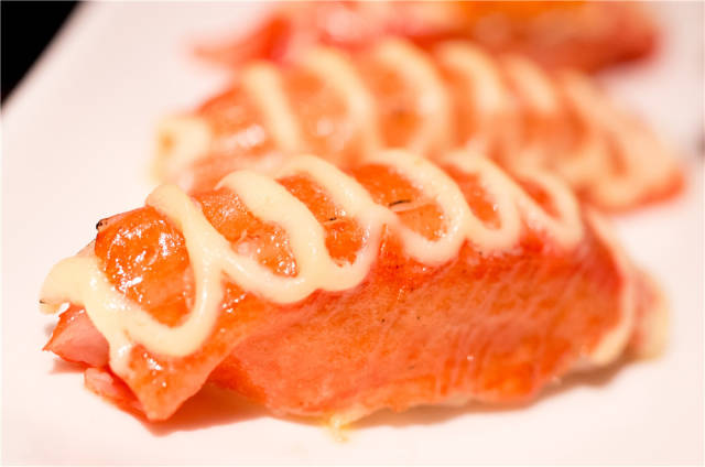 除了分量丧心病狂,颜值也是倾国倾城!火炙虾有三款,虎虾、玻璃虾和芝士虾,款款都是寿司界的芈月!浓浓的酱香把玻璃虾狠狠提升了一个档次!吃完才知道,原来烧过的寿司是这么惊艳!