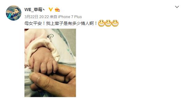 没错,相信大家也猜到了,之所以强调是第一个女儿,就是因为在昨晚,草莓在自己的微博中告诉大家他再度喜得千金,并且母女平安。而在该微博发布后,大家留下祝福的同时也纷纷感慨草莓的动作也太快了,这曾经的几个队友还是单身,他这就已经二胎了。教练Joker更是在微博下方留言,让网友按草莓的“CD”算一算,下一次草莓生孩子是什么时候。