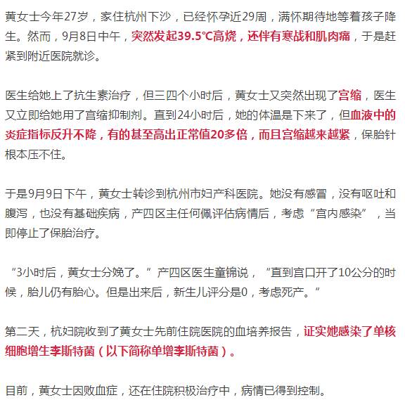 因为吃了冷藏食品,杭州一90后准妈妈突然发起高烧,引起强烈宫缩,怀孕29周就生下宝宝,已没有生命体征,而她自身至今还躺在医院里治疗败血症。