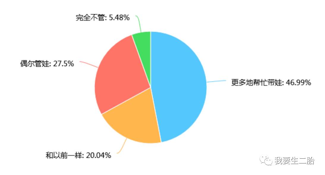 调查同时显示,近一半的父亲在二孩出生后更多地参与到育儿中来。