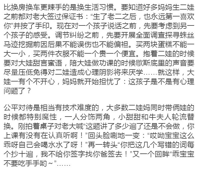 自从二胎政策放开以来,亲戚朋友见面的问候语就从“吃饭了吗”升级为“生二胎了吗?”,有被催生二胎的,有自愿加入二胎队伍的,眼看不少妈妈已经走在二胎的路上,生活也是发生了不小的变化。