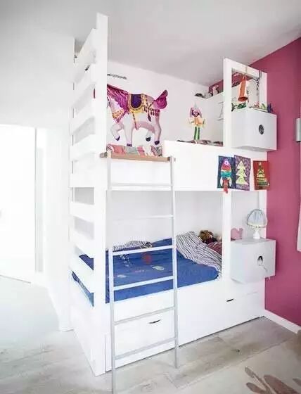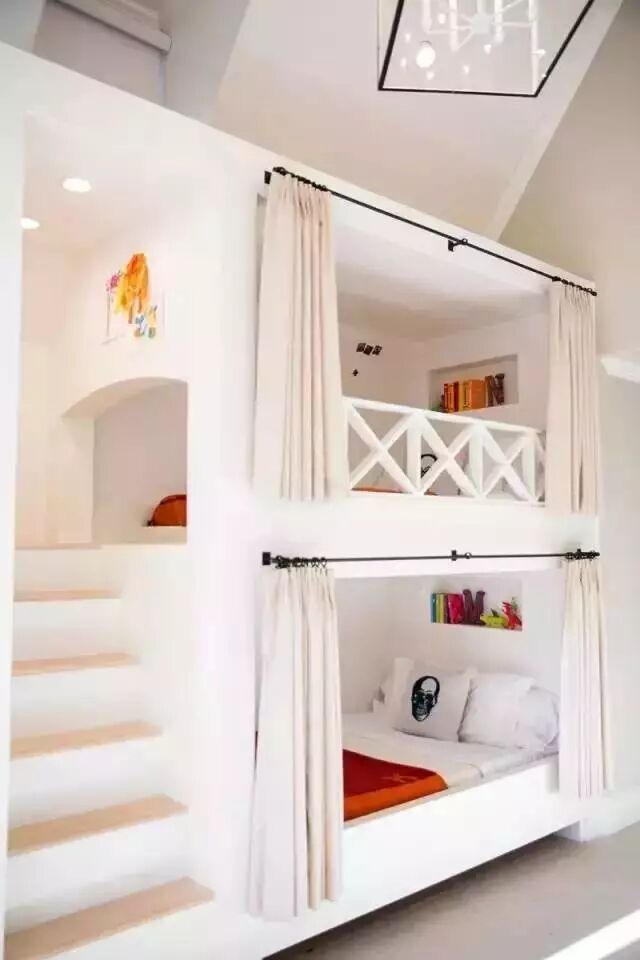 今天主要讲的是有二胎的儿童房,说点题外话,其实大叔觉得如果有条件的话,还是再生个吧,虽说养个娃确实需要很多精力财力,但大叔80后的这一代多为独生子女,甚是明白孩童期间的孤独感以及成年后的无助感,有个兄弟姐妹可能会好很多,当然,这是大叔的一点感想,哈哈,根据自己的情况来吧,图片有点多,可能大家会觉得图片里的方案很难实现,其实不然,现在很多家具厂和定制家居都能实现,甚至上面都有宜家产品,也许你的图片和里面的图片只是差个滤镜;