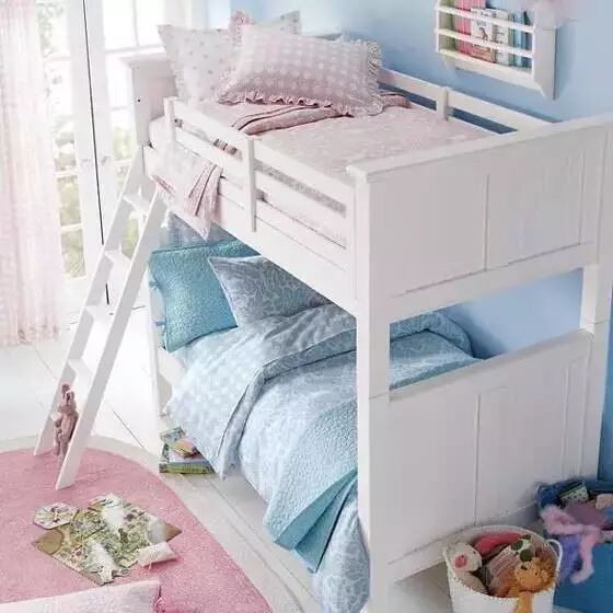 如果你是双胞胎,或者两娃岁数差在一岁左右,那么双床还是首选,但根据大叔的建议,买双床的话,还是预先买好能睡到6-8岁左右的,大叔在宜家买的铁艺可以伸缩的床,感觉小孩大的很快,感觉就显小了,而且娃娃没地方放,你将来也没办法坐下来陪她们