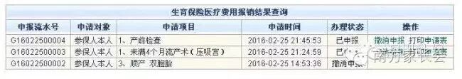 1、申报成功后可以通过“生育保险医疗费用报销查询”菜单查看办理状态。