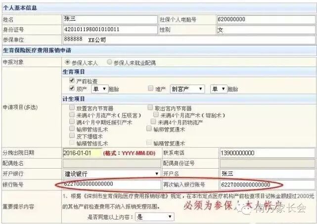 (1)报销未就业配偶生育医疗费用的银行账户要求提供参保人的银行账户;