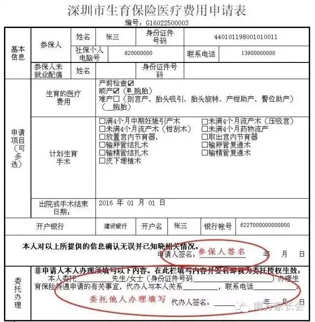 3、《深圳市生育保险医疗费用申请表》(原件);