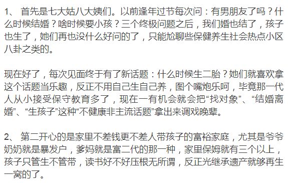 3、第三开心的是苦于自己强大的优质基因无人认领的,尤其是第一胎就表现出优秀基因遗传特质的,恨不得马上再生一个更优秀的,以延续香火,希望等自己老了之后,一屋子精英孩子精英孙子绕膝而座。