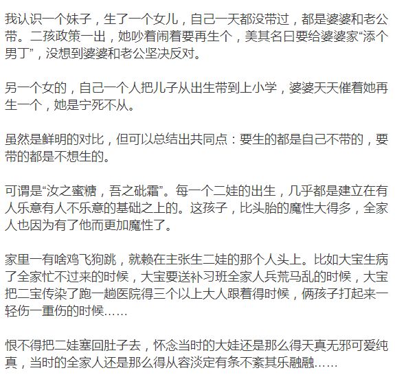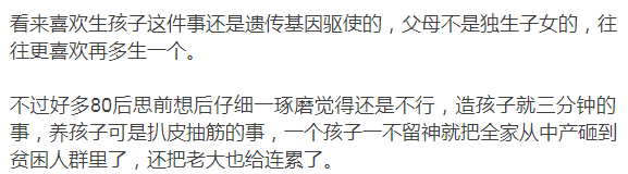 4、第四是老思想的,第一胎是女儿想要个儿子美其名曰“不多生几个将来没人养”的老思想驱动者,或者“老了生病多一个孩子分担负担”的超现实魔幻主义执行者。
