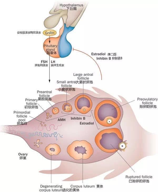 是转化生长因子β超家族成员,由窦前卵泡和小窦卵泡产生,主要生理功能是在性腺分化过程中抑制苗勒氏管发育。AMH对卵泡的生长和发育有抑制作用,基础AMH水平<0.5——1.1ng/mL,预示卵巢储备下降和卵巢低反应(POR)。