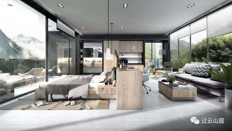 与民宿界蔚然成风的老宅老村改造不同,过云山居桐庐店基本上是一个归零的重生过程。素白的厢体建筑略带爱琴海风味,裁剪的通景立窗恰如其分地收纳黛山与云海入室,而女生们钟爱的浴缸,自然乖乖地摆放在风景最好的位置。谁都不希望在度假的时候被关在密闭的盒子里。景观是民宿的王道,通景是客房的先决,四面墙壁最好消失,变成一个隐身在梯田之上的呼吸空间。