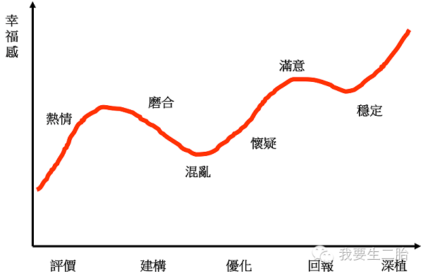 这其实就是人的适应曲线,在经历了震惊、磨合、混乱、不安之后,逐渐走向稳定。