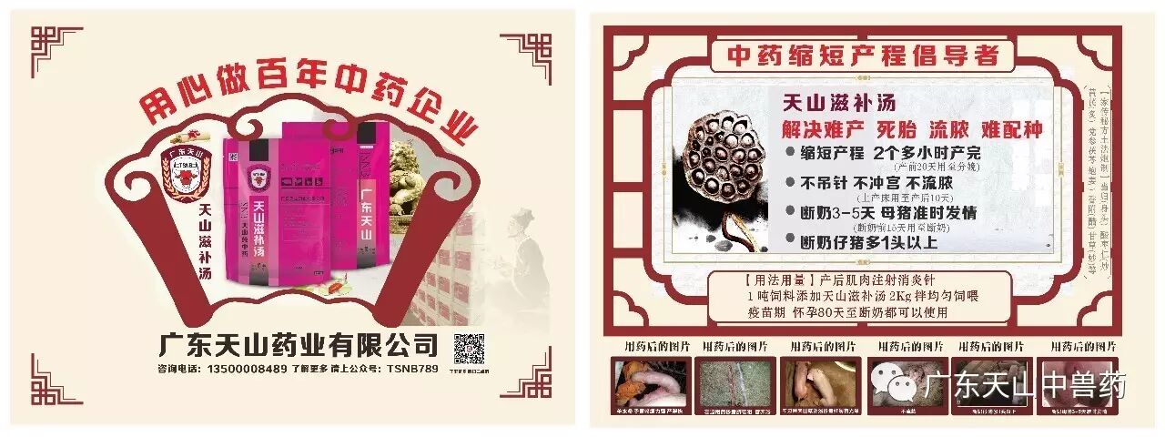 7)产前80天—下次配种饲喂天山滋补汤,促进母猪乳腺发育,补充母猪气血,断奶好配不返情。