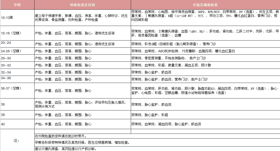 每个孕妈都应该进行有规律的产前检查。一般要求从怀孕3个月起,要每月检查1次。7个月后,要每两周检查1次。9个月后应每周检查1次。如果有特殊情况。如阴道流水、流血、腹痛、头昏、眼花、胸闷、胎儿不动等,应该随时去医院检查。
