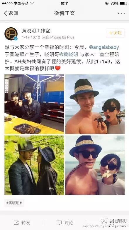 黄晓明于去年10月公开承认baby怀孕,更晒出三个人旅行的照片,甜腻的程度羡煞旁人。