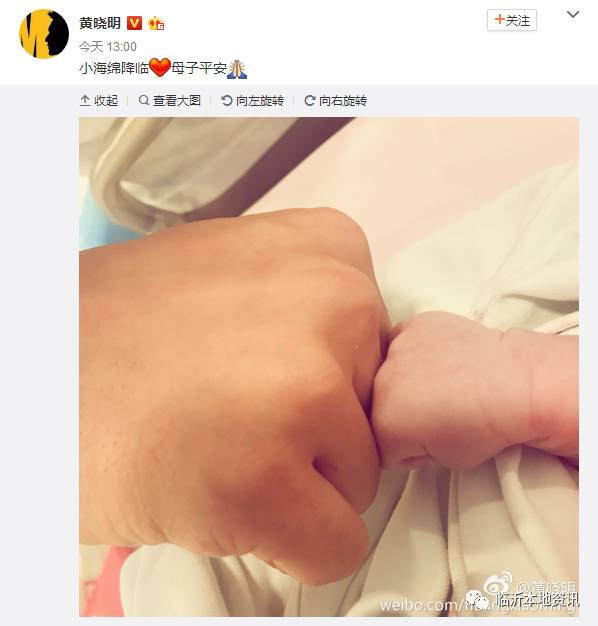 下午1点,黄教主发微博报喜,给孩子起名小海绵。