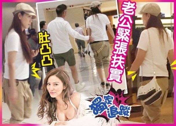 阿滕与Matthew日前下午现身西九龙一个大型商场找吃的,同行还有两位长辈。一行人在食肆治好肚子后,阿滕先带长辈到洗手间,见她对老人家相当贴心。其后她翘住老公慢慢行,两夫妇边走边聊,十分恩爱!阿滕当日穿白色短袖Tee、四个骨短裤兼脚踏平底鞋,迎面看她没什么特别,但从侧面看,向来身形甚fit的她,腹部竟微微隆起,而且由后面看其臀部向横发展,惊现“巨趸”,加上老公拖到实、步伐缓慢,举动十足怀孕初期的妇女。